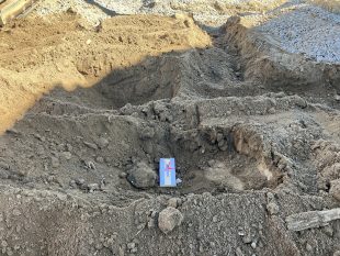 地鎮祭の時に神主様から預かった鎮物 しっかりと床に鎮めさせて頂きました。 エレベータピットの北側ですね(*^-^*)
