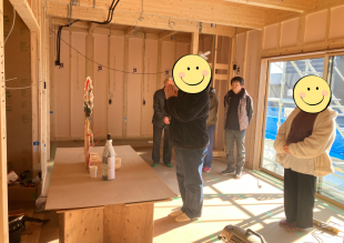 上棟式が執り行われました(*´ω`) お施主様、工務、営業、大工さんが現地に集まり完成までの工事の安全を祈願しました(^^♪