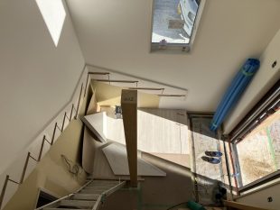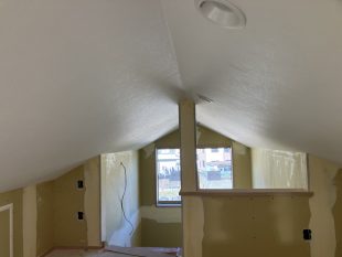 吹き抜け部分のクロス工事が完了しました(^^♪ 高所部分もとても綺麗に貼られています、職人さん凄いΣ(・ω・ノ)ノ!