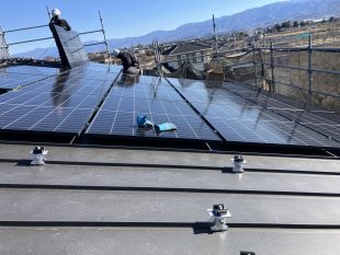 太陽光パネルの搭載工事を行いました。 屋根いっぱいに太陽光パネルが設置されました(`・ω・´)