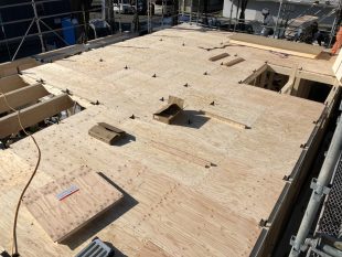 朝早くから作業を始め、一日で上棟の工程を完了させます(`・ω・´)