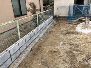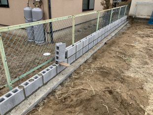 土留めのブロックの積み上げが進められています(^^♪
