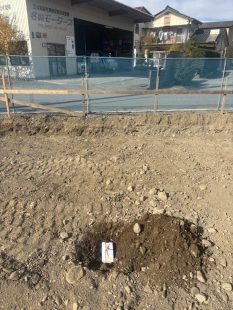 根伐り及び砕石工事を行いました。 根伐り工事を終えた後に家の中心に鎮物を埋納しました(*^-^*)