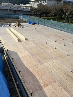 床合板の敷き込みが完了しました(^_-)-☆ 養生をして作業完了です♪